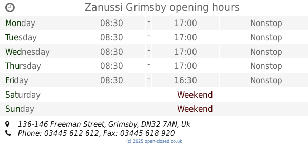 It is also possible to : Edit these OPENING HOURS of Store Zanussi In Grimsby, 136-146 Freeman Street,